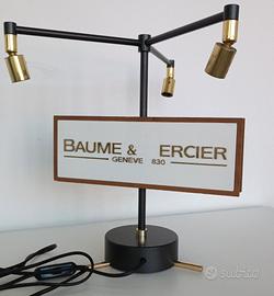 Si tratta della parte superiore di una vetrina di orologi Breguet e Baume Mercier, che tramite 3 lampadine illuminava la parte sottostante con gli orologi.