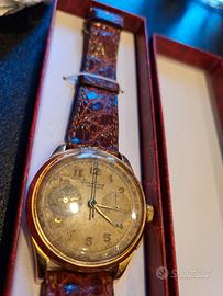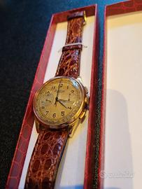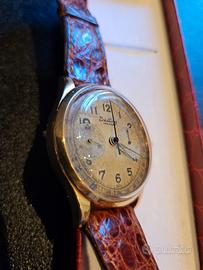 Orologio veramente raro degli anni 40, perfetto revisionato e funzionante, il cronografo funziona perfettamente , carica manuale, cassa in oro 18k.
