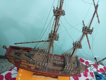 10 cannoni ottone ancora. Lanterna, scialuppa, sartiame ottimo stato... Da ristrutturare primo albero e timone, fatto a mano 1971