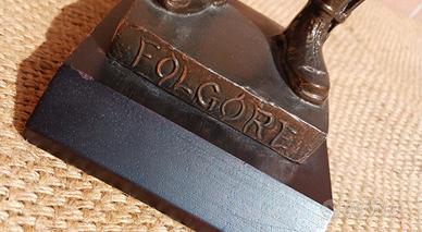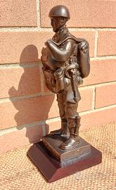 Statuetta Paracadutista Brigata Folgore in divisa da lancio anni '60/'70 in lega metallica da riparare mancante mano sinistra basetta in legno marcata dal produttore.