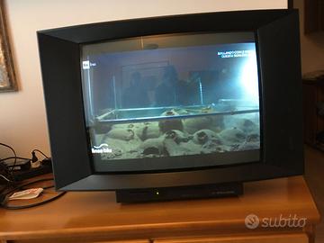 Causa upgrade tecnologico regalo solo ad appassionato (tecnico, collezionista) TV Brionvega Quadro 28 Funzionante perfettamente in ottimo stato (e'' stato ininterrottamente in funzione dal '94 al 2023) con telecomando originale solo ritiro Zona Milano Barona, no spedizione. L'apparecchio ha due prese scart alle quali si possono connettere decoder esterno e altre sorgenti AV.
