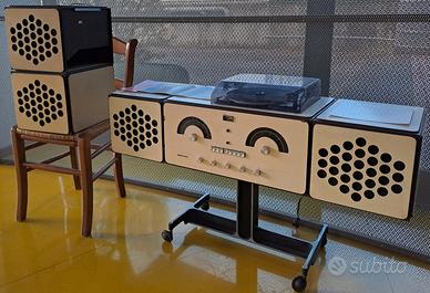 Radiofonografo bianco art.RR126 Fo-St di Brionvega questo modello RR 126 è un radiofonografo progettato dai fratelli Pier Giacomo Castiglioni e Achille Castiglioni nel 1964, commissionato e successivamente prodotto dall’azienda di elettronica italiana Brionvega. Nasce come apparecchiatura stereofonica, divenuta un’icona del pop design degli anni ‘60.