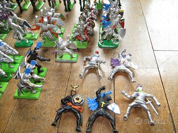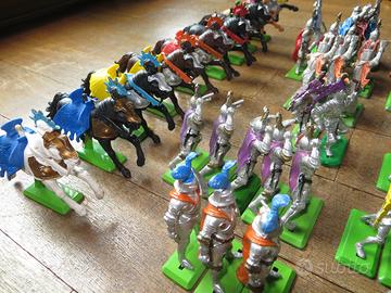 44 soldatini cavalieri medievali Britains Deetail + 9 cavalli della stessa serie, anni '70.