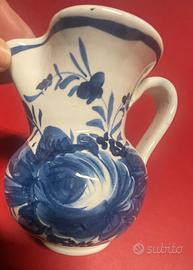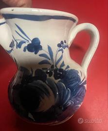 Elegante brocca in ceramica con un delicato motivo floreale blu.