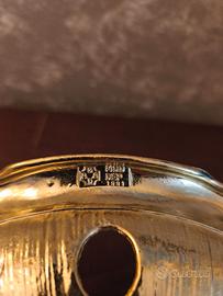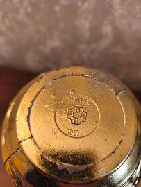 L'oggetto ha un aspetto lucido e dorato, tipico degli articoli decorativi vintage.