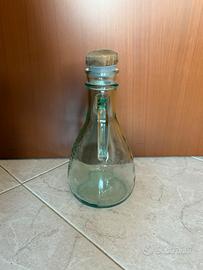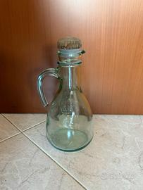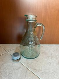 Bellissima brocca in vetro trasparente, con decoro a uva. Ha un tappo in legno. Ideale per olio, aceto o vino. Perfetta per la tua cucina!