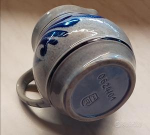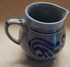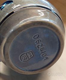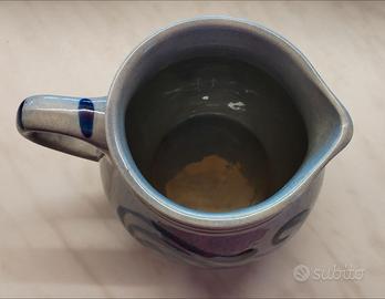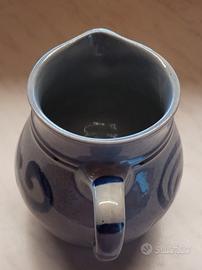 Brocca in terracotta con glassa al sale blu dalla Germania occidentale, marca Merzi & Remi, anni '60. Misure: altezza 13 cm larghezza massima 16 cm e profondità 12 cm. Gradito il ritiro a Zambana nuova.