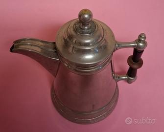 Caffettiera o teiera in metallo con manico in legno anni 40/50