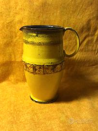 Brocca versatoio in ceramica color giallo con decorazioni geometriche circolari. Made in Italy manifattura BALDELLI prima metà del 900. Alt. Cm20 diametro superiore cm.10