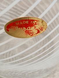 Brocca in vetro di Murano soffiato con la scritta "Made in Murano". Etichetta ancora presente. Trama a reticolo. Una caraffa vintage che richiama la forma delle anfore romane. Vetro intatto e in ottime condizioni. Altezza 29 cm, diametro massimo 11 cm.