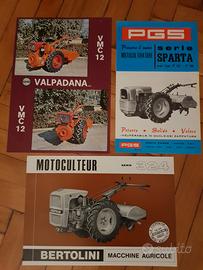 tanti deplian di varie marche , macchine agricole di tutti i tipi . lampacrescia ,agri , nibbi ,bianchi , laverda , bertolini ,pgs , valpadana , s.e.p. , agria barbieri , bcs , goldoni , mg ,psbo , baraldi.