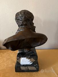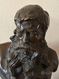 Busto in bronzo patinato, alto 24 cm, raffigurante un uomo barbuto dall’espressione intensa e pensosa. Il modellato è energico e realistico, con grande attenzione alla resa psicologica del volto e al movimento della barba e dei capelli. L’opera poggia su base in marmo scuro.