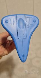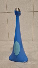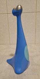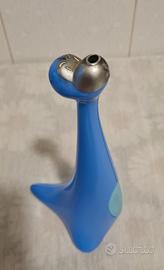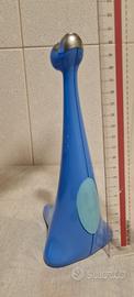 Bruce Lighter ALESSI designed by Stefano Giovannoni 1990, iconico porta accendino a butano. Faccia in metallo color argento, corpo in resina azzurro e verde acqua. L'accendino si inserisce all'interno della base e la fiamma fuoriesce dalla bocca premendo la pancia del dinosauro.