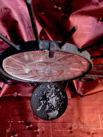 Alto 40 x 25 cm struttura in ferro battuto a mano , cerchio in vetro inciso il sole .