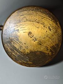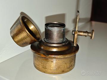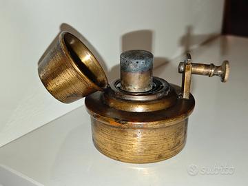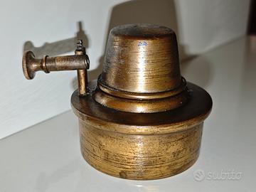 Vecchio bruciatore ad alcool in ottone, risalente ai primi del 900. Oggetto usato con visibili segni del tempo/d'usura. Larghezza massima 9 cm, base da 6 e altezza di 7 cm. Preferibile il ritiro in negozio, contattare per eventuale spedizione o informazioni in merito.