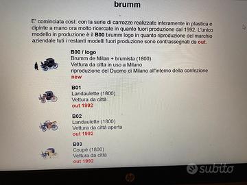 Brumm anni 70 modellini di carrozze senza cavalli , tutti fuori produzione dal 1992… Modelli X1 X2X3X4X5X7X8 in scala 1/43 potrebbero servire ad aggiustare altri modelli , diventati oggi rari