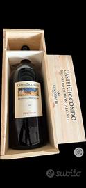 Brunello di Montalcino CastelGiocondo cantina Marchesi Frescobaldi Toscana del 2020 da 5 lt con scatola originale, ha una veste rosso rubino intenso e brillante. Anche in quest'annata così favorevole si caratterizza per un'eleganza inconfondibile e per un'intrigante complessità. Il bouquet si apre con note floreali seguite da sensazioni fruttate che rimandano a piccoli frutti rossi e neri. Seguono sentori terziari e speziati, quali liquirizia, noce moscata, foglie di tè verde e chicco di caffè. La trama tannica è elegante e fitta, la mineralità avvolge il palato ed impressiona per la sua armonia.