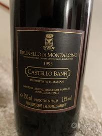 Brunello di Montalcino Castello Banfi 1993. Il livello del vino si è leggermente abbassato per l'invecchiamento. Prezzo non trattabile.