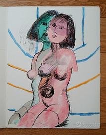 BRUNO CASSINARI Cartella con due litografie: NUDI / ELISABETTA cm. 24x32