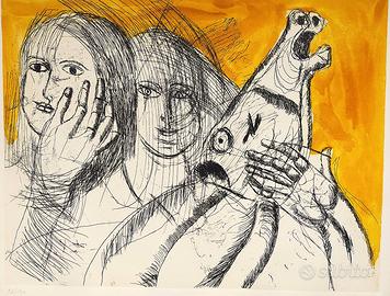 Si tratta di una splendida litografia-acquaforte di grandi dimensioni a colori con firma a matita dell'Autore, il pittore Bruno Cassinari (1912-1992), in basso a dex.