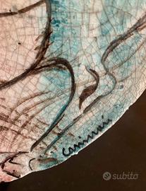 Opera in ceramica di Bruno Cassinari, realizzata da Rossicone. Misure 35x30 cm. Titolo: simbiosi cavalli.
