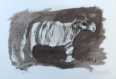 Bruno Cassinari "Pecus" 1982. Litografia cm 35x50. Esemplare 21/150. Opera firmata. Con cartella custodia.