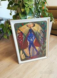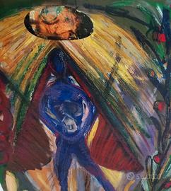 Bruno Ceccobelli, "Tabernacolo", olio e collage su masonite, 50x70, 2018, firma titolo e data sul retro. No cambi