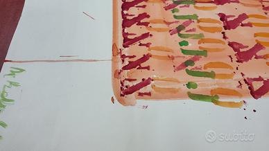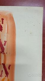 Bruno di Bello, Italia, 1938 – 2019 Astratto, 1961, su carta C.G.C. EXTRA GELATINATA Dim. 70 x 48 cm Firmato in basso a sinistra con pennello colore verde Opera unica Opera ricevuta direttamente dell’artista. Documento di autenticità rilasciato dalla Fondazione Bruno di Bello Opera in ottime condizioni, segni del tempo sugli angoli superiori L’opera sarà spedita arrotolata in contenitore rigido. Unitamente all’opera ASTRATTO viene ceduto anche un’altra opera, raffigurante un uomo seduto, dim. 27 x 32 cm, firmata a penna in basso a sinistra, realizzato su foglio da disegno di recupero con tecnica mista, raffigurante un uomo seduto. Opera non certificata, realizzata alla fine degli anni 50, durante il periodo di studio, in una sessione in aula del Liceo Artistico di Napoli, frequentato dall’Autore e dal possessore dell’oggetto. Le fotografie fanno parte dell’asta.