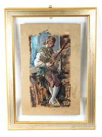 Questa opera è composta da 2 dipinti, eseguiti su entrambe le faciate dello stesso cartoncino. La cornice è stata concepita per visualizzare entrambi i dipinti semplicemente girandola di 180 gradi.