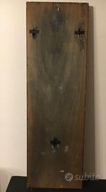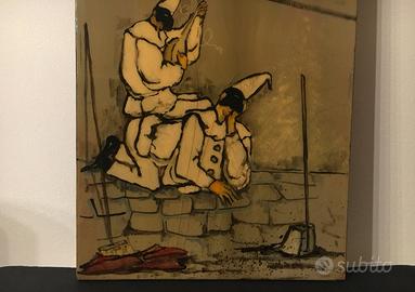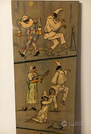 Bruno Polver Figure di Carnevale, 1958 dipinto su tavola, cm. 120x38x2cm. Firmato in basso a destra.