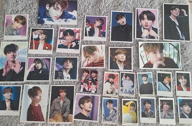 Vendo Gadget della Band K-pop BTS. I seguenti oggetti sono : 29 foto di Junkook in vari formati, 5 foto della band e 1 di Taehyung, una collana con su scritto Jungkook e un bracciale col vecchio logo, uno specchietto con il logo nuovo, un photobook e due poster giganti, uno con Jungkook e uno di tutta la Band, in ottime condizioni