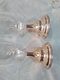 due bicchieri in cristallo e vase in netallo nuovi msi usati