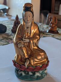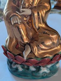 Buddha vintage in ceramica e oro dipinto a mano