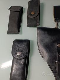 fondina in cuoio (Beretta 92/98), porta caricatore in cuoio nero MDF, porta caricatore in cordura VEGA, porta caricatore in cordura, porta manette cuoio marrone RADAR, vendo TUTTO a €18 compresa spedizione. Accetto solo pagamento anticipato anche PayPal. Rispondo solo dopo messaggio. Grazie