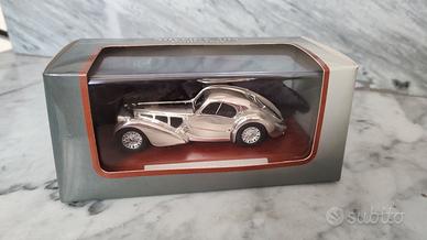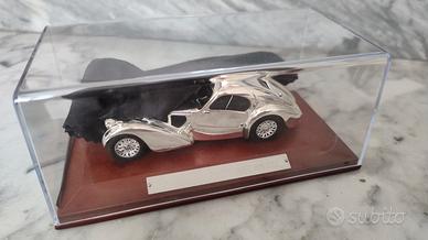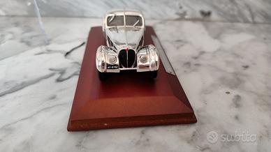 Splendido MODELLINO BUGATTI ATLANTIC COUPE' DE AGOSTINI SILVER CARS COLLECTION 1:43 1/43 In confezione originale con teca e base legno