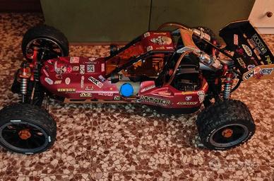 Buggy radiocomandato di grande scala 1/5, in ottimo stato vendo per inutilizzo motore Zenoha 32 CC a benzina, trazione 2WD vari upgrade installati tra cui servo comandi digitali con ingranaggi completamente in acciaio ad alta risposta e prestazioni, scarico per velocità dritto in acciaio, filtro aria in poliestere KeN, sistema di recupero gas di scarico per aumentare la reattività e le prestazioni in genere, luci led anteriori, vetri abitacolo in plexiglass. modello quasi completamente in metallo fornisco parti originali e alcuni accessori tra cui una marmitta scarico rovesciata, due cerchi nuovi posteriori, alcune parti di ricambio nuove, batteria 6 volt NiMH 2000 mAh per servocomandi e ricevente inclusa. lascio anche ricevente 2.4 GHz compatibile AFHDS da accoppiare con radiocomando compatibile NO RADIOCOMANDO INCLUSO NOTA DI VENDITA NON SPEDISCO SOLO CONSEGNA A MANO NON FATEMI PERDERE TEMPO IL PREZZO È QUESTO È GIÀ BASSO E NON È TRATTABILE GRAZIE