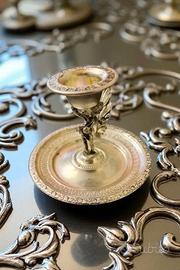 Bugia portacandela con putto in metallo argentato peso 59gr altezza 5cm diametro base 8cm diametro portacandela 2,5cm