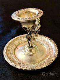 Bugia portacandela con putto in metallo argentato