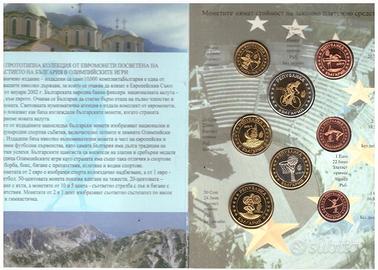 Bulgaria Euro Coin Collection 2004 Olympic games FDC prototipo di esemplare bulgaro in blister con 8 monete a tiratura limitata.