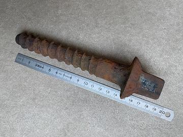 vendo alcuni bulloni ferroviari a testa quadra di acciaio molto grossi e vecchi recuperati da un tratto ferroviario privato in disuso da anni. sono robustissimi e molto particolari. per collezionismo o progetti di fai da te tipo attaccapanni rustici o anche per forgiatura.