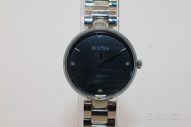 Spettacolare orologio per signora "BULOVA" in acciaio quadrante nero con diamanti diametro 32 mm. Perfettamente funzionante pila in dotazione.