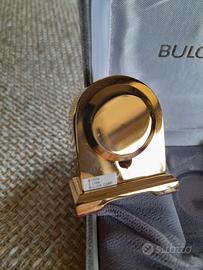 Come da foto vendo sveglietta da tavolo a batteria marca Bulova, placcata in oro.