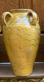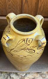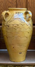 1) Bellissimo bummulo quadriansato in ceramica di Caltagirone o Burgio, anni '10 / '20, notate come i disegni girano tutt'attorno alla ceramica, molto particolare il motivo del pesce. Misura cm. 51