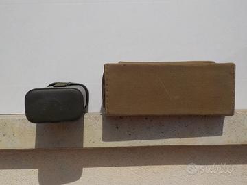 N° 2 Esercito Ceco, scatola in materiale semirigido telato ,maniglia in cuoio probabilmente usato per manutenzione arma o dispositivo tecnico. Misure Lunghezza cm 23,Altezza cm 18,larghezza cm 9 Tasca frontale lunghezza cm 9 ,Altezza cm 11 3 scomparti interni Assolutamente nuovo. mai usato. € 10