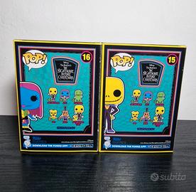 Bundle Funko Pop Disney #15 #16 The Nightmare before Christmas Jack Skellington + Sally Blacklight. Ottime condizioni come da foto.