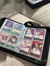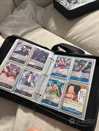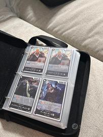 Raccoglitore a tema One Piece con 34 fogli da 8 slots ciascuno (tot. 272 slots) + 227 tra carte rare foil e qualche leader.