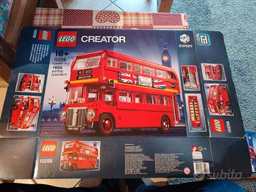lego 10258 originale bus London fuori produzione tenuto in vetrinette tutti i pezzi, scatola e istruzioni intatte vendo intero e montato o a pezzi in sacchetti non originali
