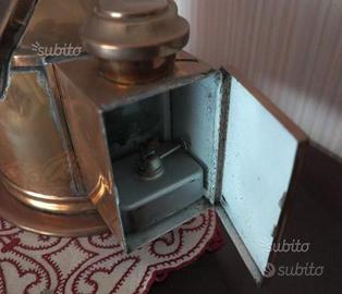 Con lumino ad olio nello scompartimento laterale per permetterne la visione anche di notte e con sospensione della bussola con sistema basculante per essere sempre in piano .