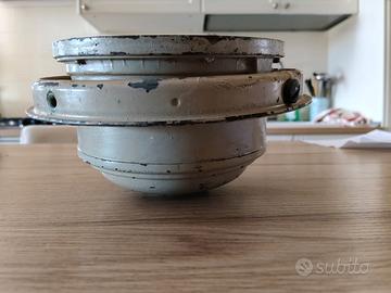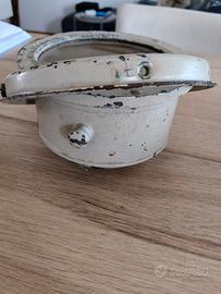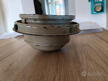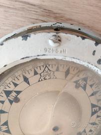 bussola marina vintage prodotta dalla storica azienda inglese Henry Browne & Son sotto il celebre marchio Sestrel. Dalle foto si evince che si tratta di un modello a sospensione cardanica (gimbal), progettato per rimanere in piano nonostante il rollio della nave. Il numero di serie è il 9426. Cos'è esattamente? Modello: È una bussola a sospensione cardanica (il cerchio metallico esterno permetteva alla bussola di rimanere in piano nonostante il rollio e il beccheggio della nave). Caratteristiche: Il quadrante riporta i punti cardinali e la scala in gradi (0-360). La dicitura "Sestrel" con il logo a forma di stella è un segno di qualità; erano strumenti standard su molte imbarcazioni del XX secolo, sia civili che militari. Numero di Serie: Il numero 9426 inciso sia sulla flangia che sul quadrante è fondamentale per l'autenticità e aiuta a datarla (probabilmente metà del '900) Apparteneva a mio padre marinaio , che ha navigato negli anni 60 e 70