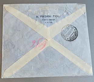 Busta colonie ottobre 1939 posta aerea Torino- Addis Abeba. Presenti 3 francobolli poste italiane Eritrea annullati e un Posta Aerea L.1 Eritrea.